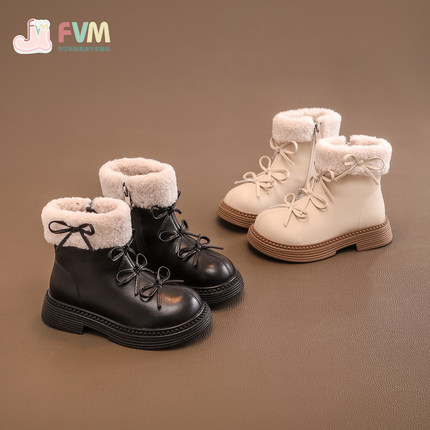 女童马丁短靴子儿童二棉鞋子2025秋冬季新款雪地靴加绒小皮靴公主