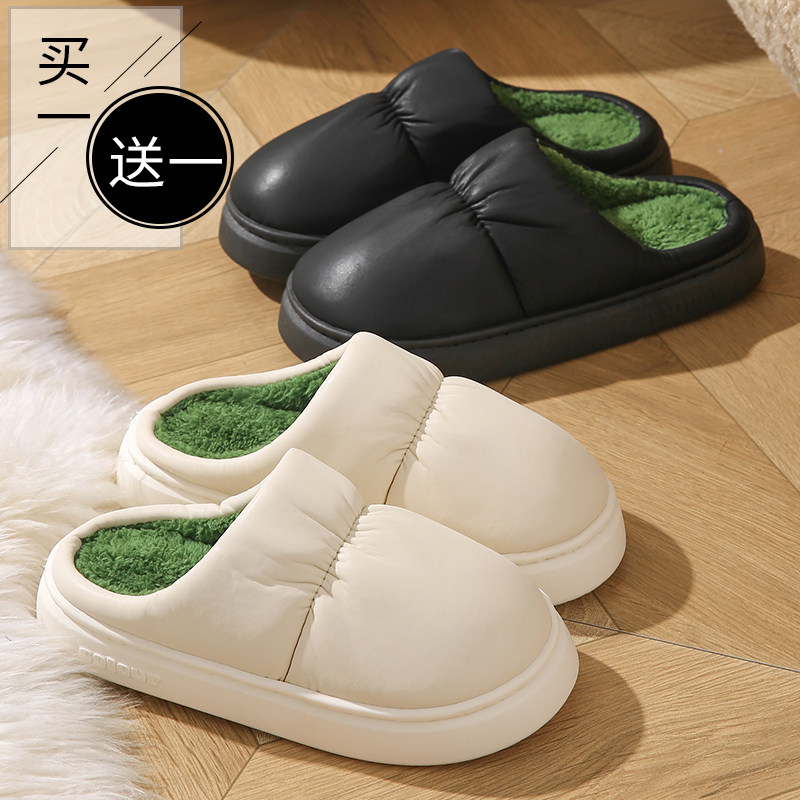 买一送一防水棉拖鞋女冬季情侣家居室内2025新款防滑保暖棉拖鞋男