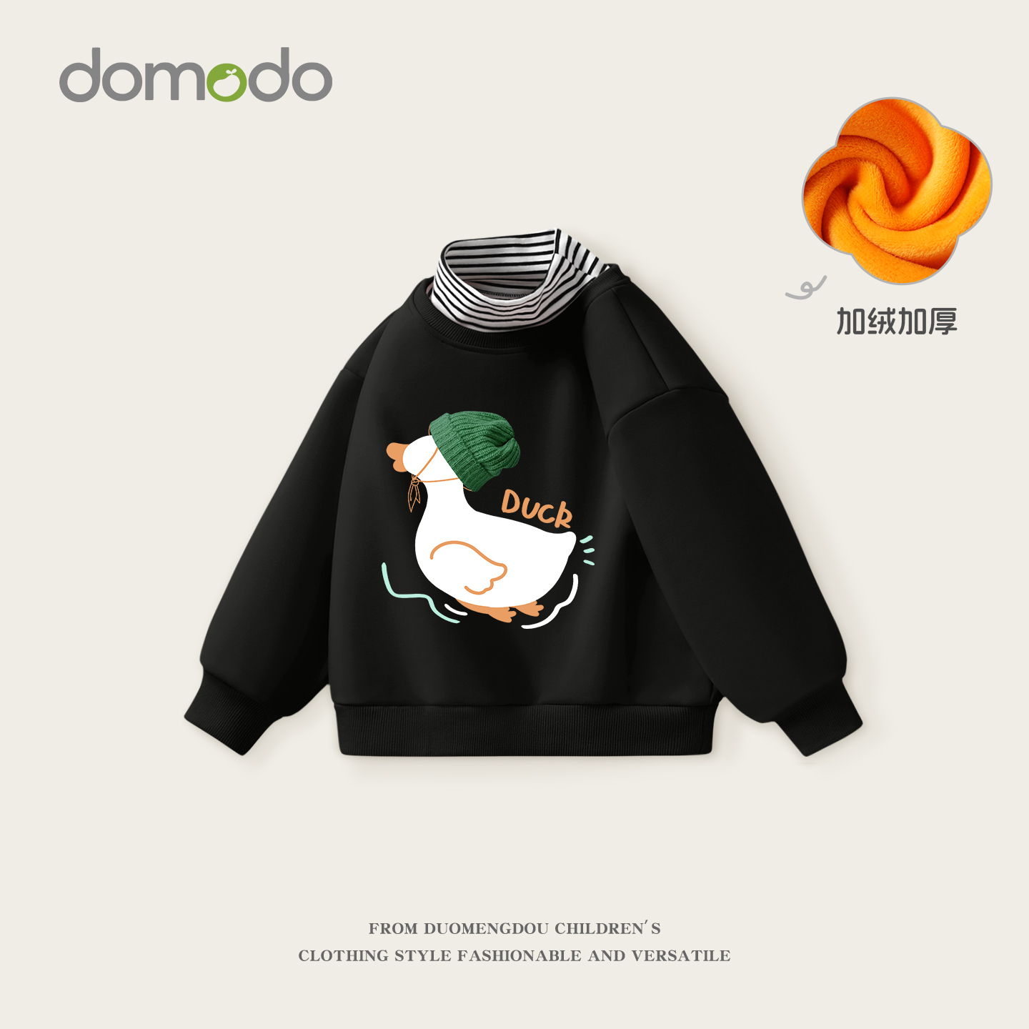 男童加绒卫衣秋冬款2025新款儿童半高领保暖上衣婴幼儿加厚套头衫