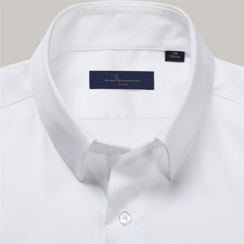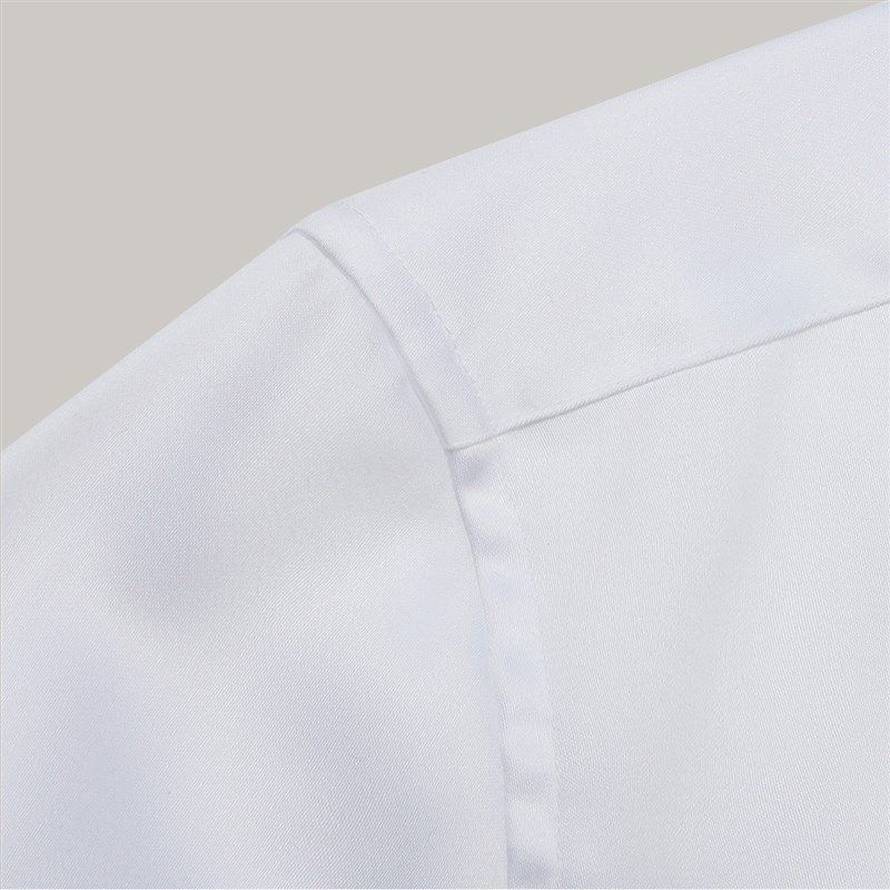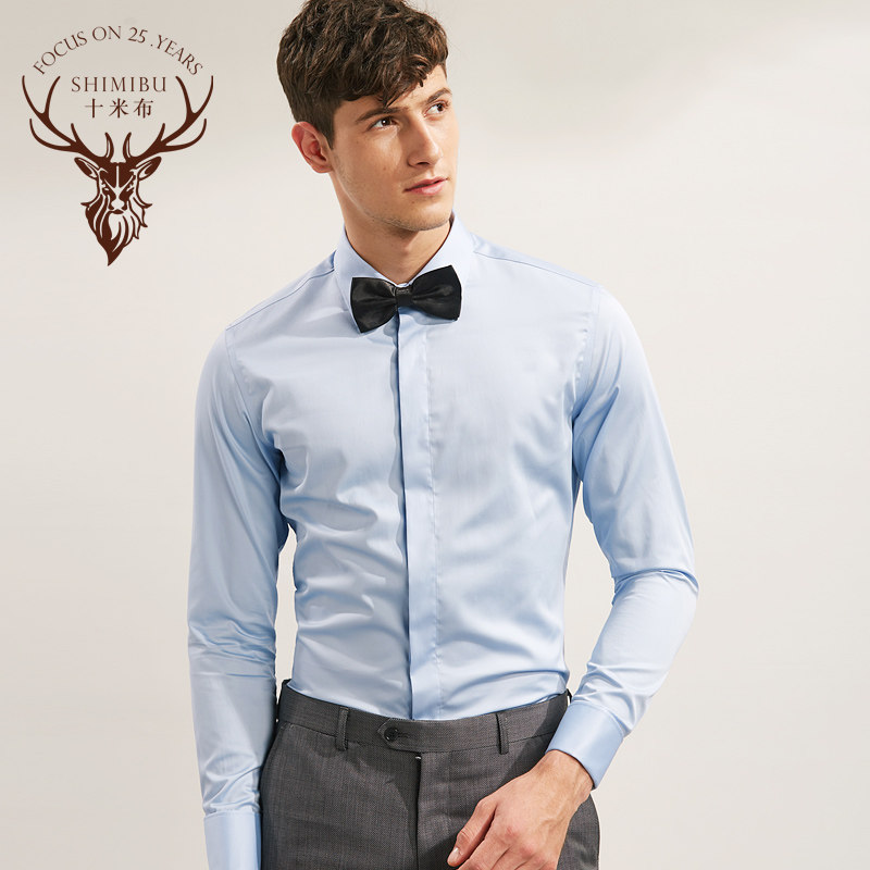 十米布丝光棉法式衬衫 男士长袖天蓝色方领衬衫 商务修身白色衬衫