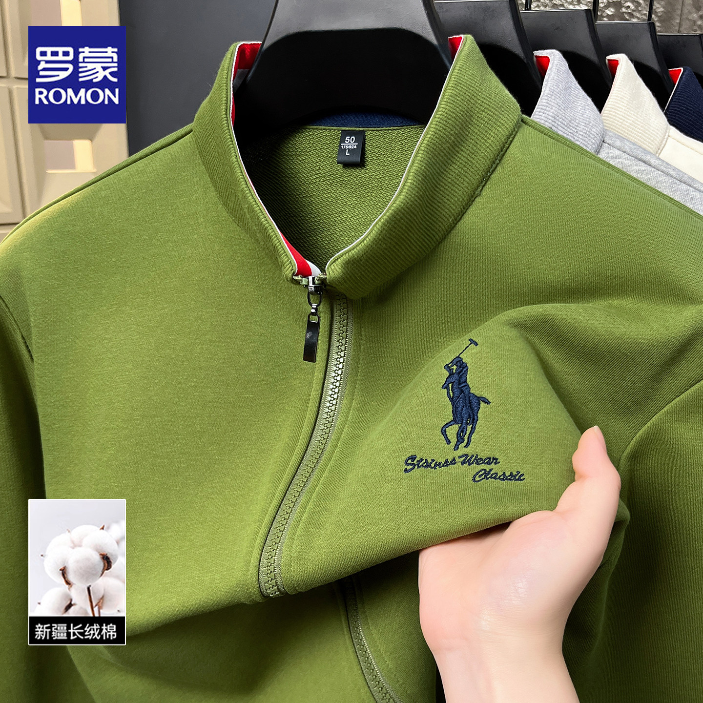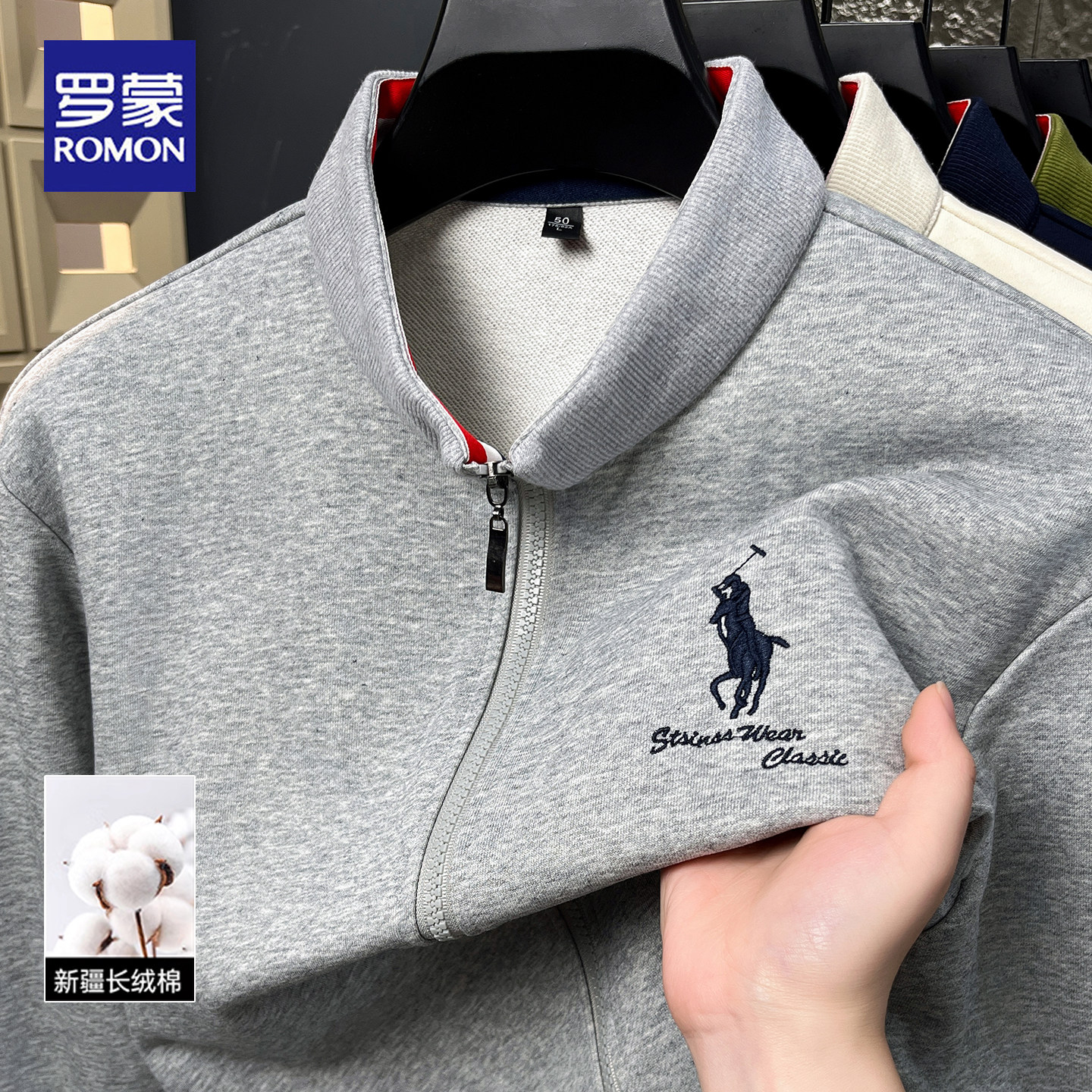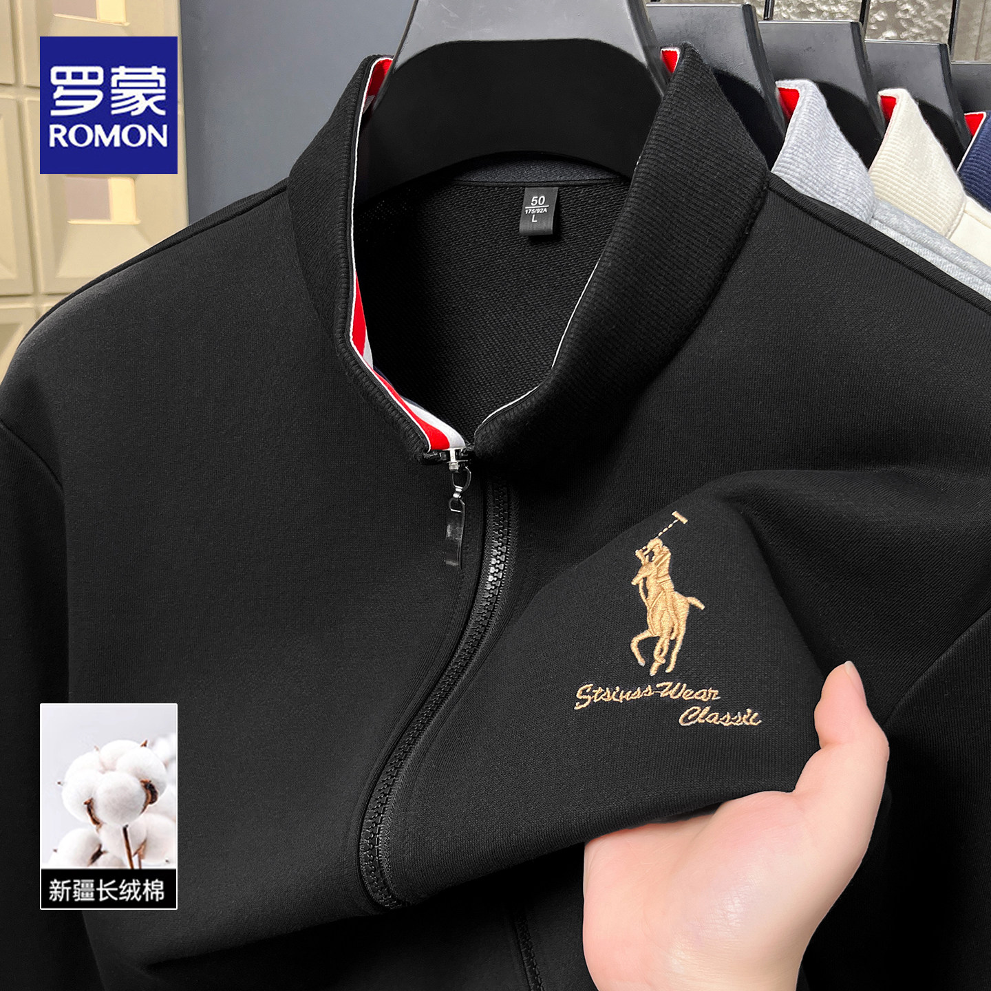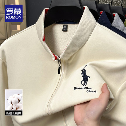 罗蒙2026春秋新款立领拉链夹克男士商务休闲刺绣运动风休闲外套男