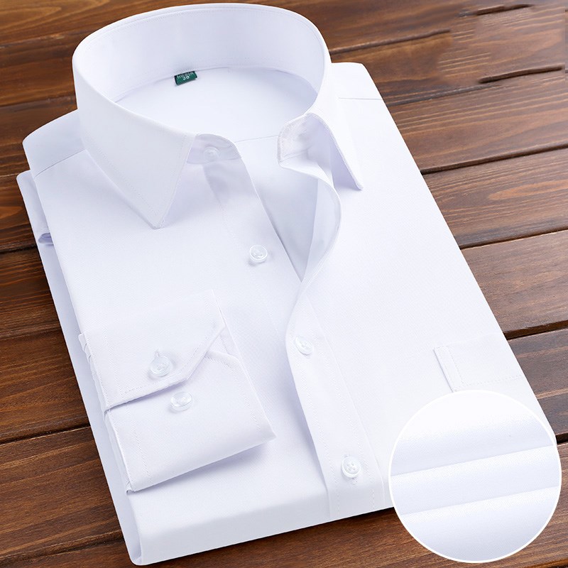 春夏棉质男士商务白衬衫长袖修身职业装工装薄款休闲男上班纯白色