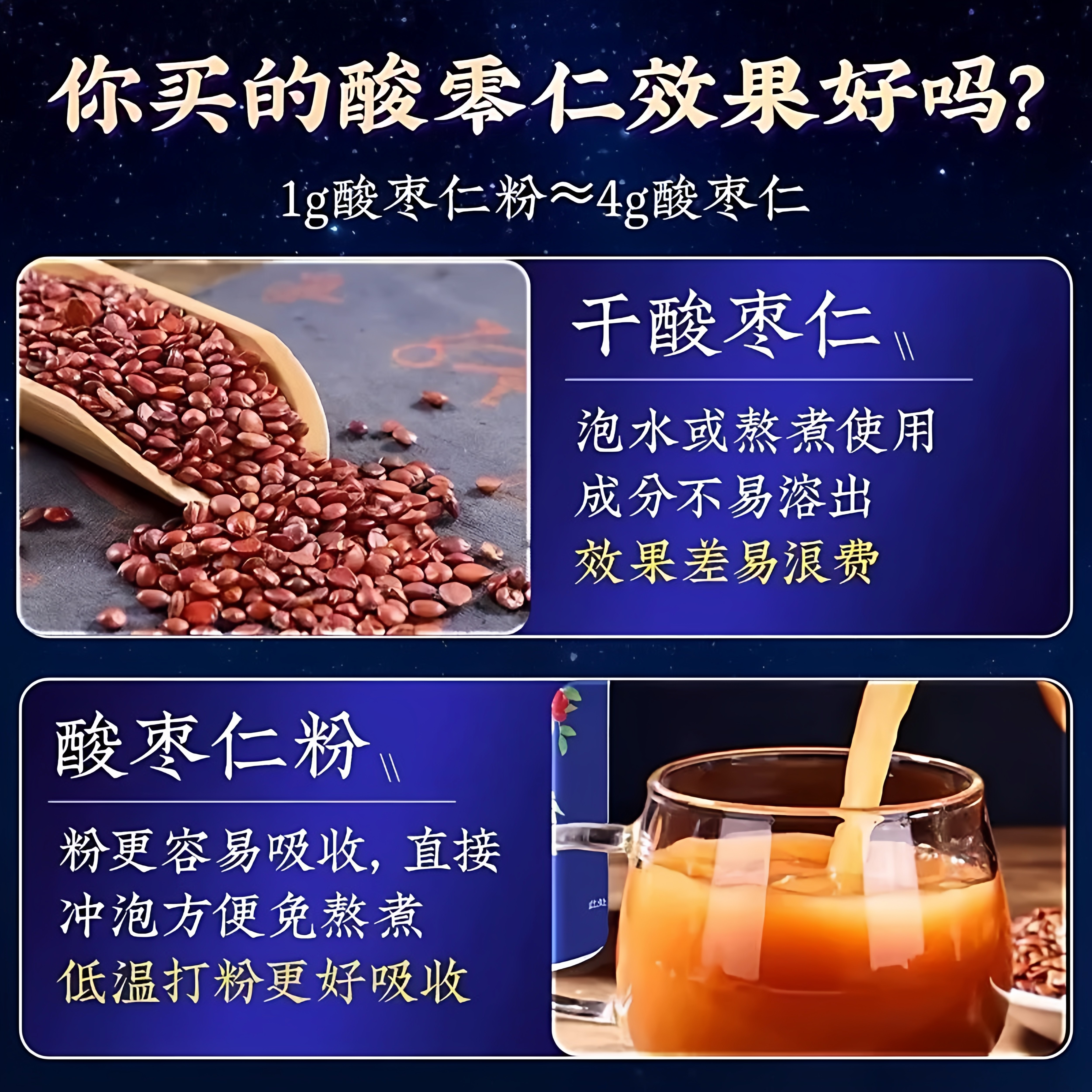 特级纯野生正宗无糖酸枣仁粉草本萃取中药材熟粉睡眠质量安神助眠
