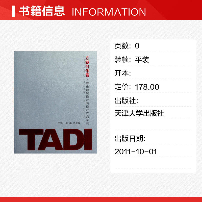 ADI方案创作卷/天津市建筑设计院建筑作品系列 刘军//刘景? 著 建筑/水利(新)专业科技 新华书店正版图书籍 天津大学出版社