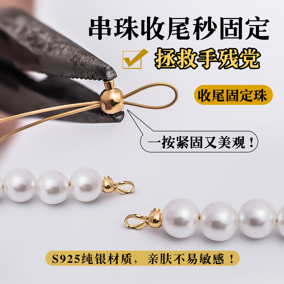 纯银收尾扣S925银定位珠卡扣DIY珍珠手链项链饰品固定夹扣头配件