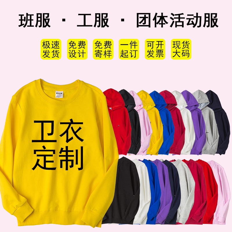 纯棉宽松卫衣定制logo儿童长袖工作服印图圆领班服刺绣加绒大码