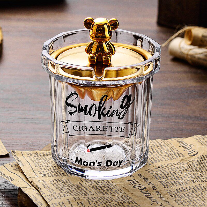 紫山竹带盖防风玻璃烟灰缸创意个性潮流烟缸家用客厅防飞灰办公室