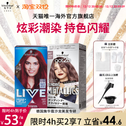 施华蔻LIVE染发剂染发膏L75女葡萄紫蓝黑雾霾灰红101粉橘色在家染