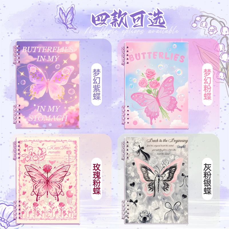 蝴蝶活页本A5笔记本本子2025新款高颜值活页笔记本ins风小学生专用记事本手账本学习用大容量可拆卸b5高中生