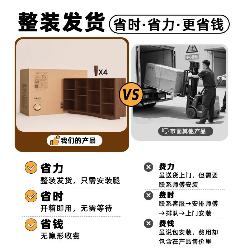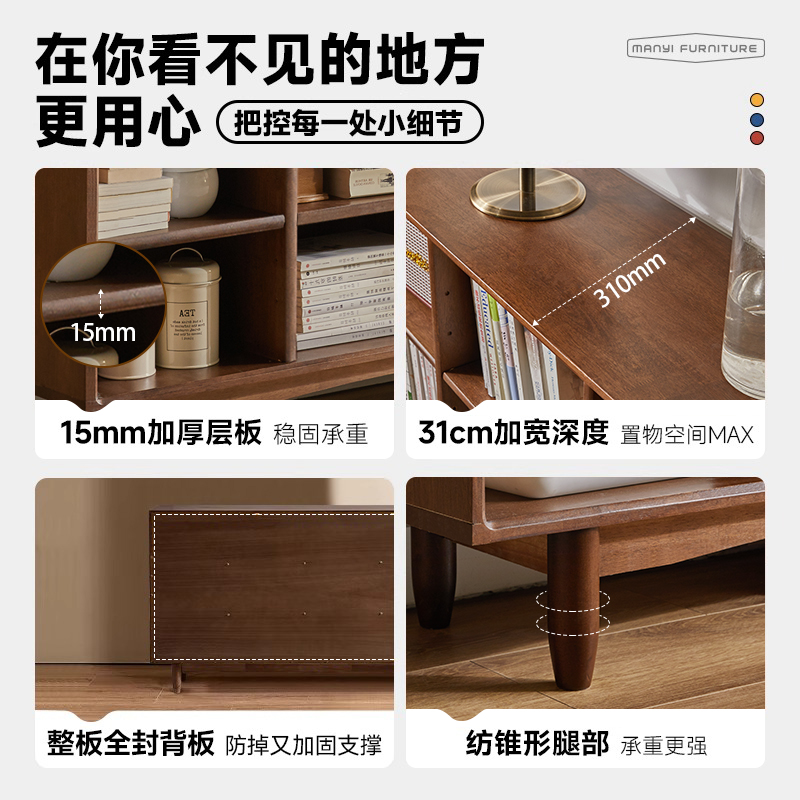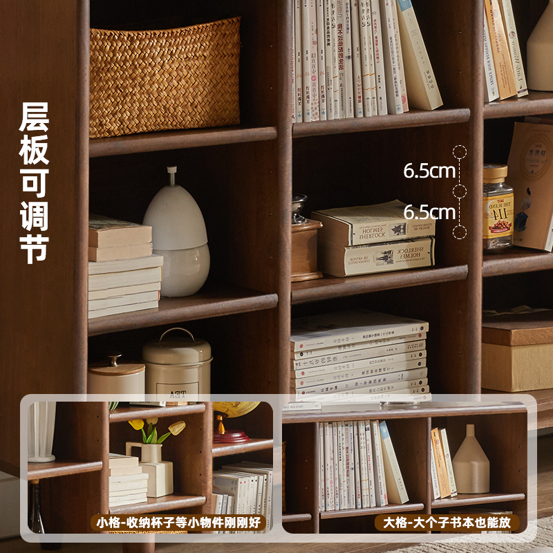 实木书柜储物柜一体靠墙客厅矮柜落地柜书架置物架胡桃木格子柜子