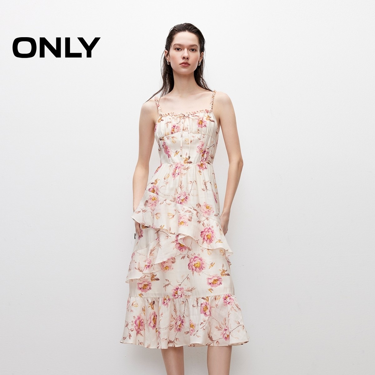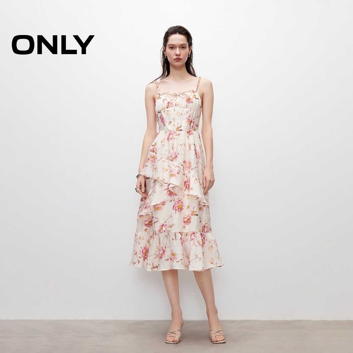 ONLY2025冬新款法式优雅收腰中长款吊带裙连衣裙女|125307046