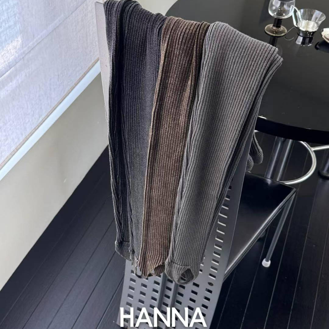 韩国代购女装2025秋款HANNA修身螺纹弹力脚踩纯色潮人打底裤