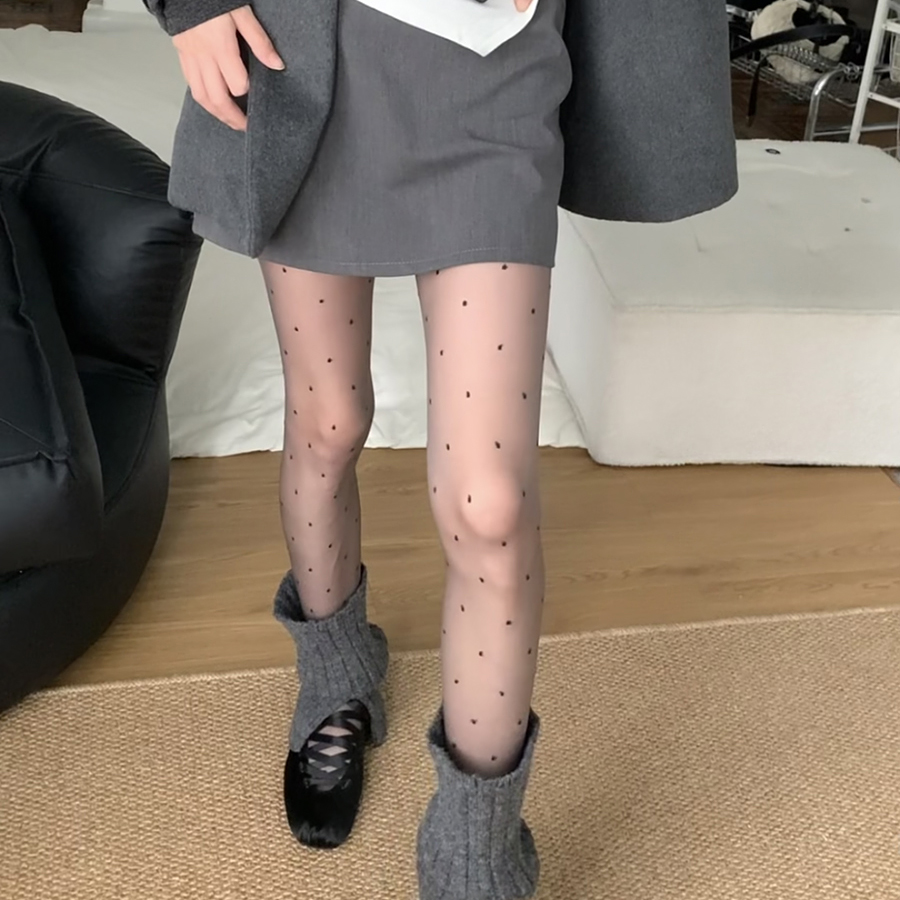 波点丝袜连裤袜超薄0d高透jk白丝袜子女秋冬季打底裤袜黑丝配袜套