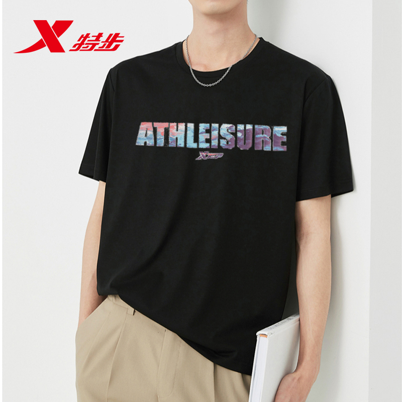 特步短袖男纯棉短t夏季宽松体恤男士上衣白色运动服男装官方旗舰