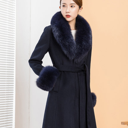 秋冬新款狐狸毛领羊绒大衣女羊毛呢子外套修身显瘦时尚呢大衣风衣