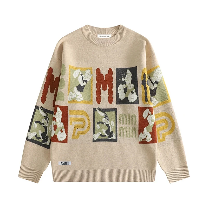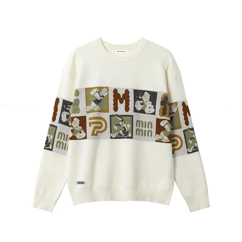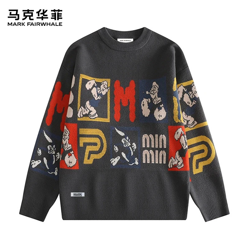 马克华菲秋季冬针织衫图案印花休闲打底衫男复古毛衣圆领套头上衣