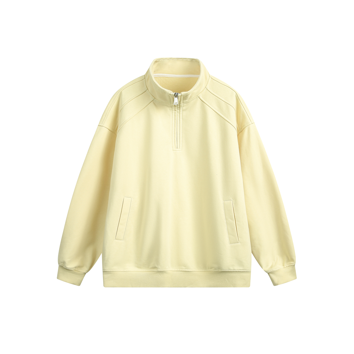 美式复古纯色半拉链卫衣外套女春秋2025新款街头宽松长袖立领上衣