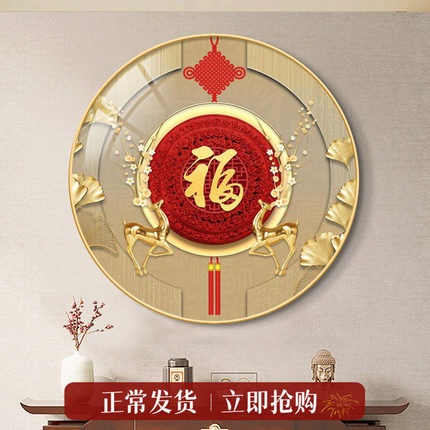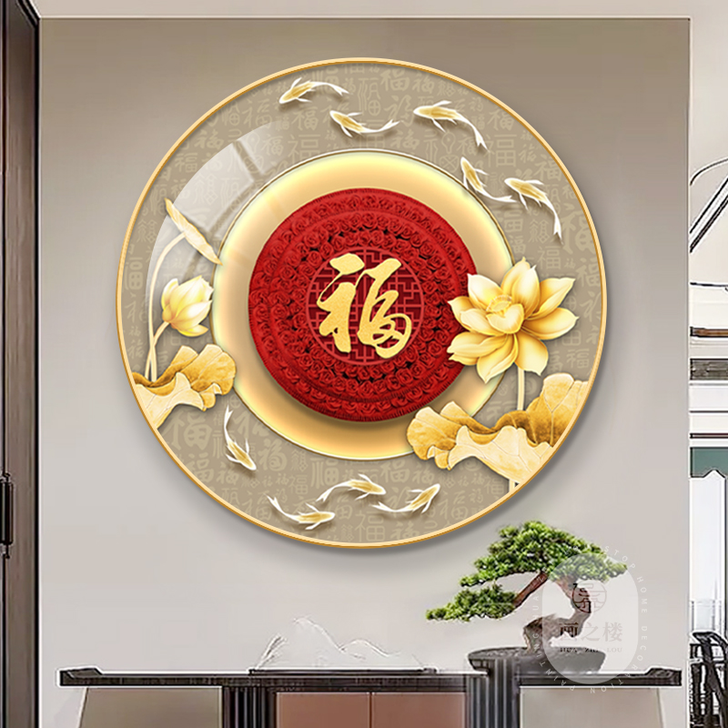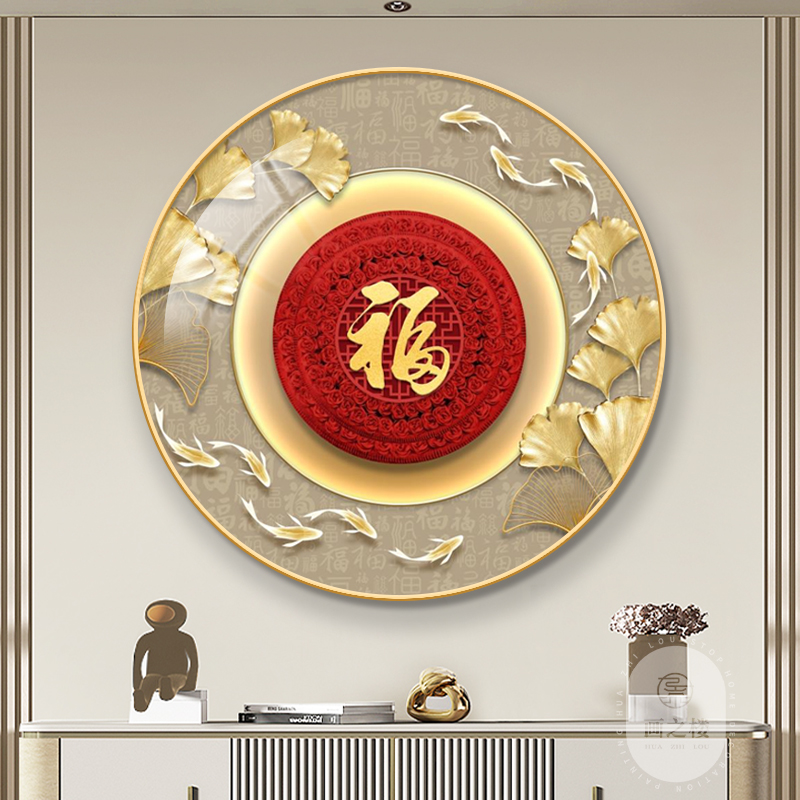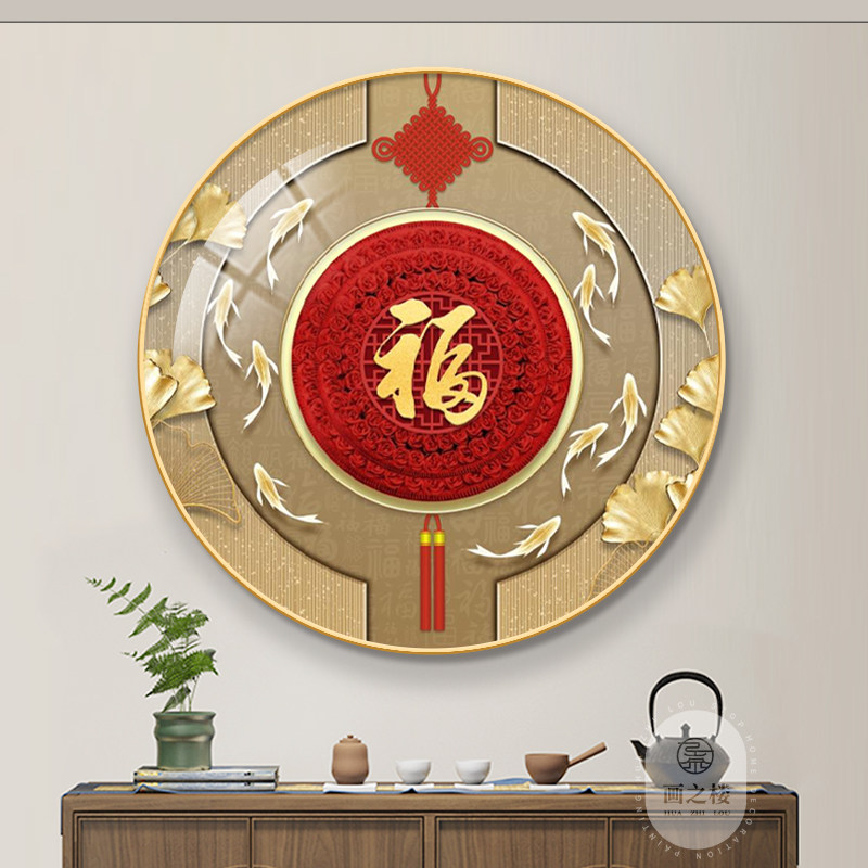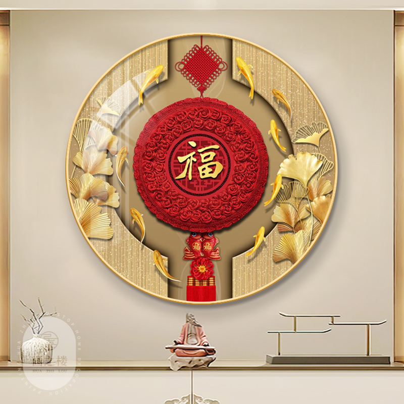 福字中国结圆形挂画轻奢大气玄关走廊过道年年有余福禄招财装饰画