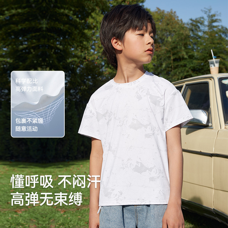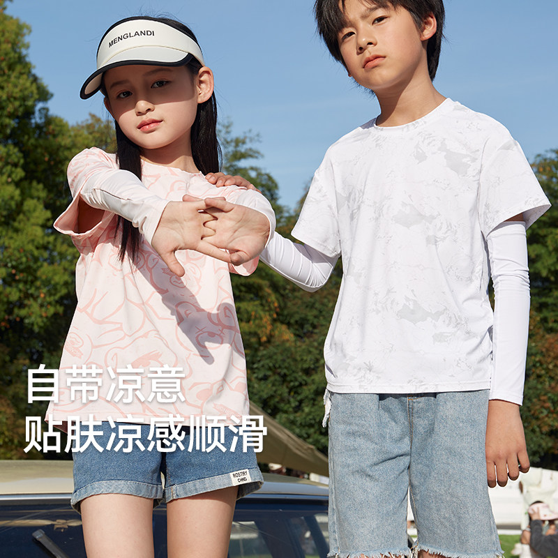 猫人女童短袖t恤2025新款夏季运动速干衣女大童高级印花防晒上衣
