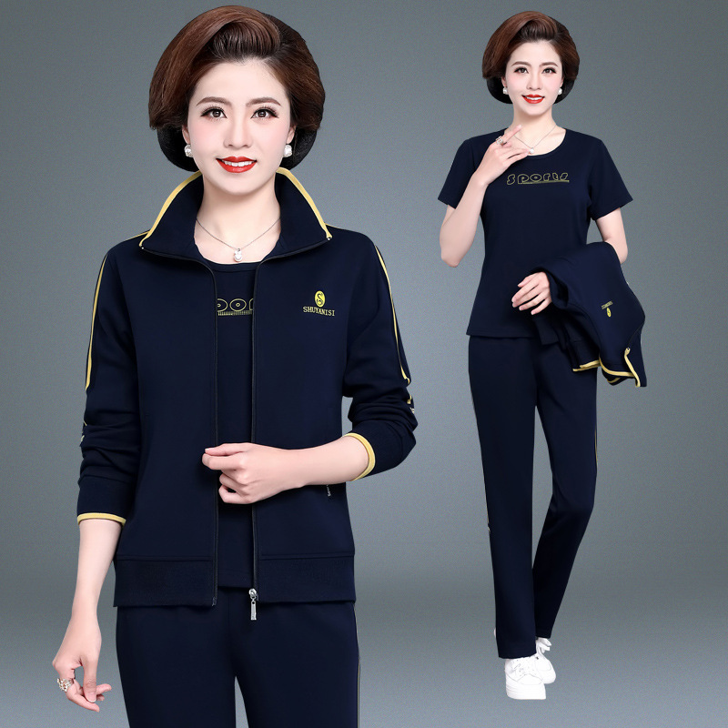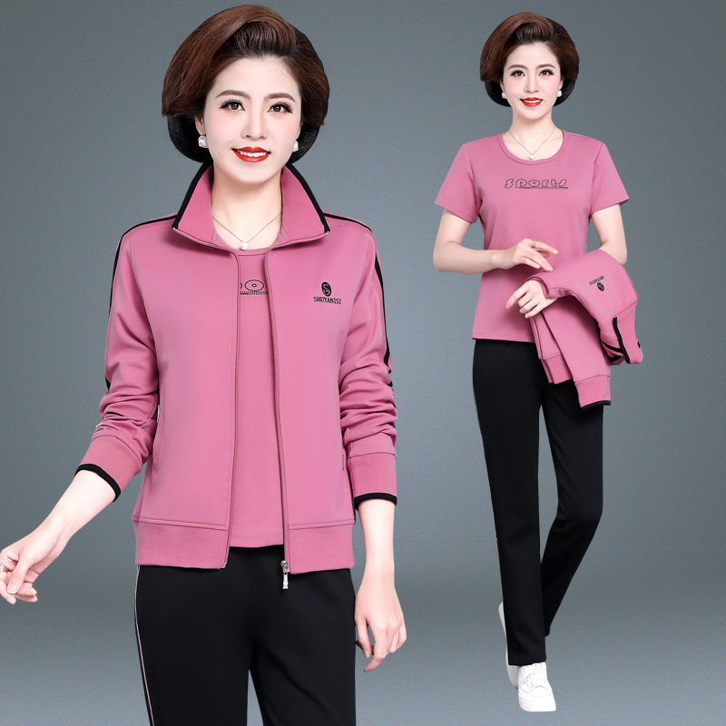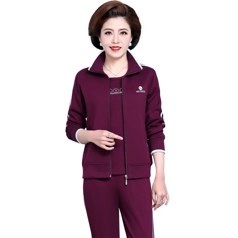 中年妈妈装春秋休闲运动服套装长袖外套卫衣中老年女秋冬三件套装