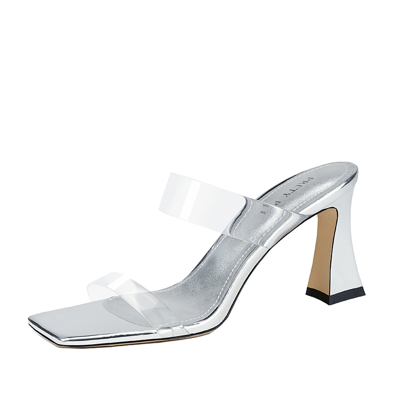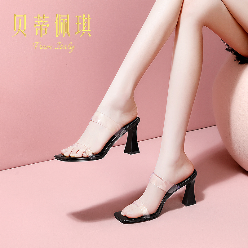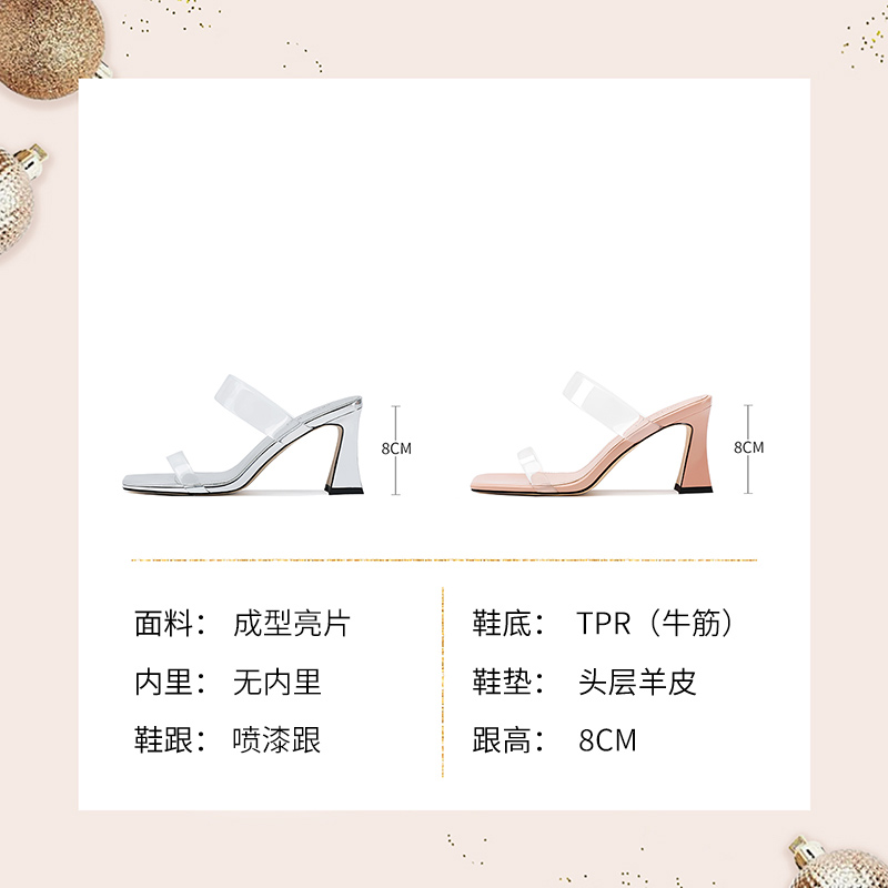 一字带半拖鞋女夏季新款2s023年露趾粗跟高跟凉拖鞋子女夏外穿时