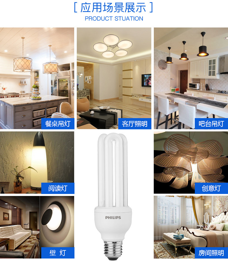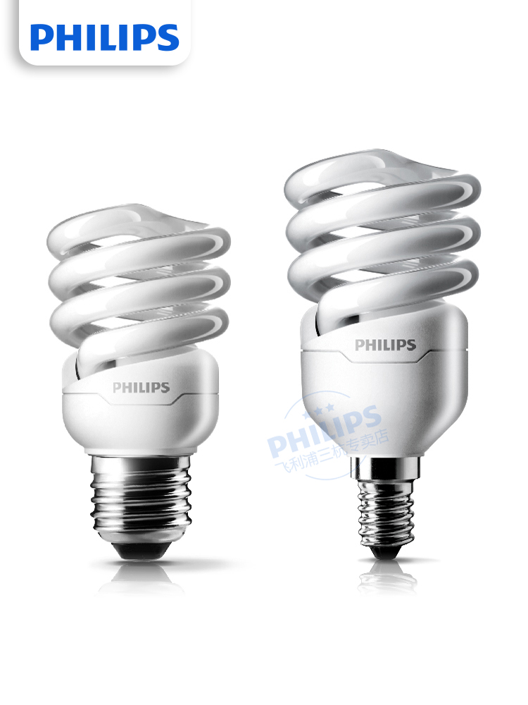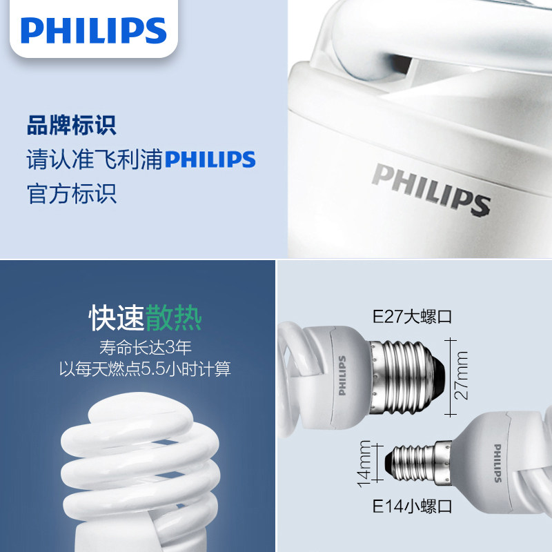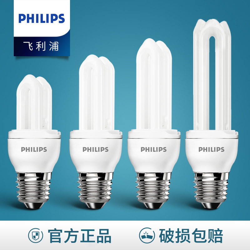 飞利浦u型节能灯e27e14螺家用台灯泡螺旋型超亮筒灯日光灯荧光灯