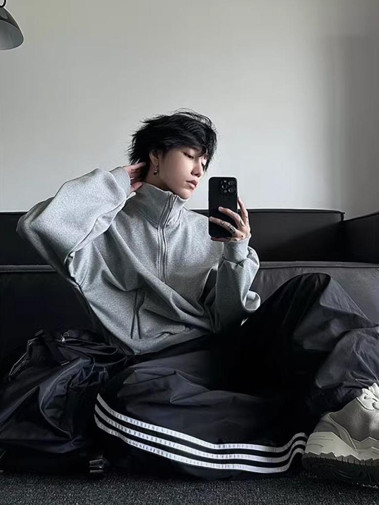 cleanfit半拉链卫衣男高级感潮牌重磅外套松弛感立领痞帅复古上衣
