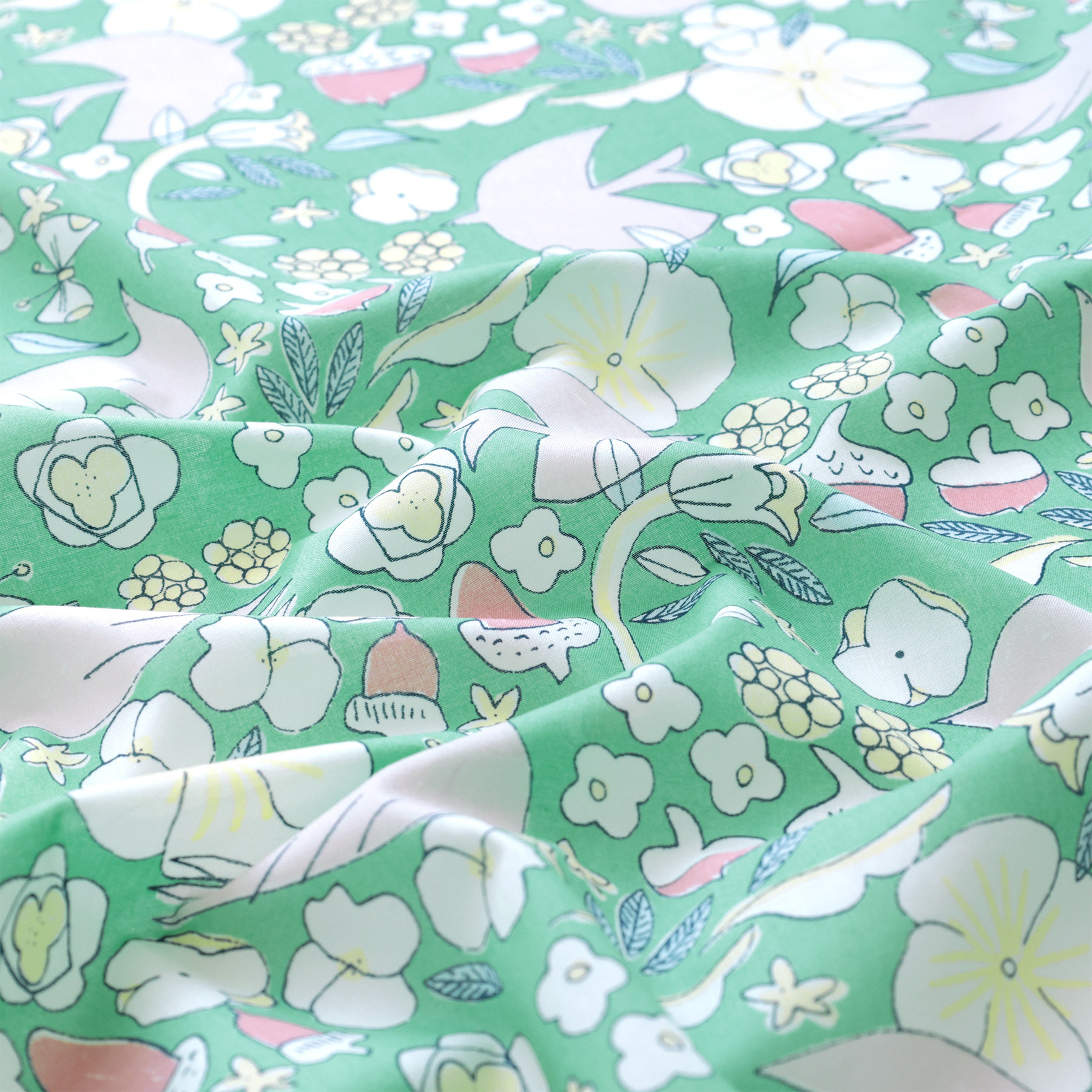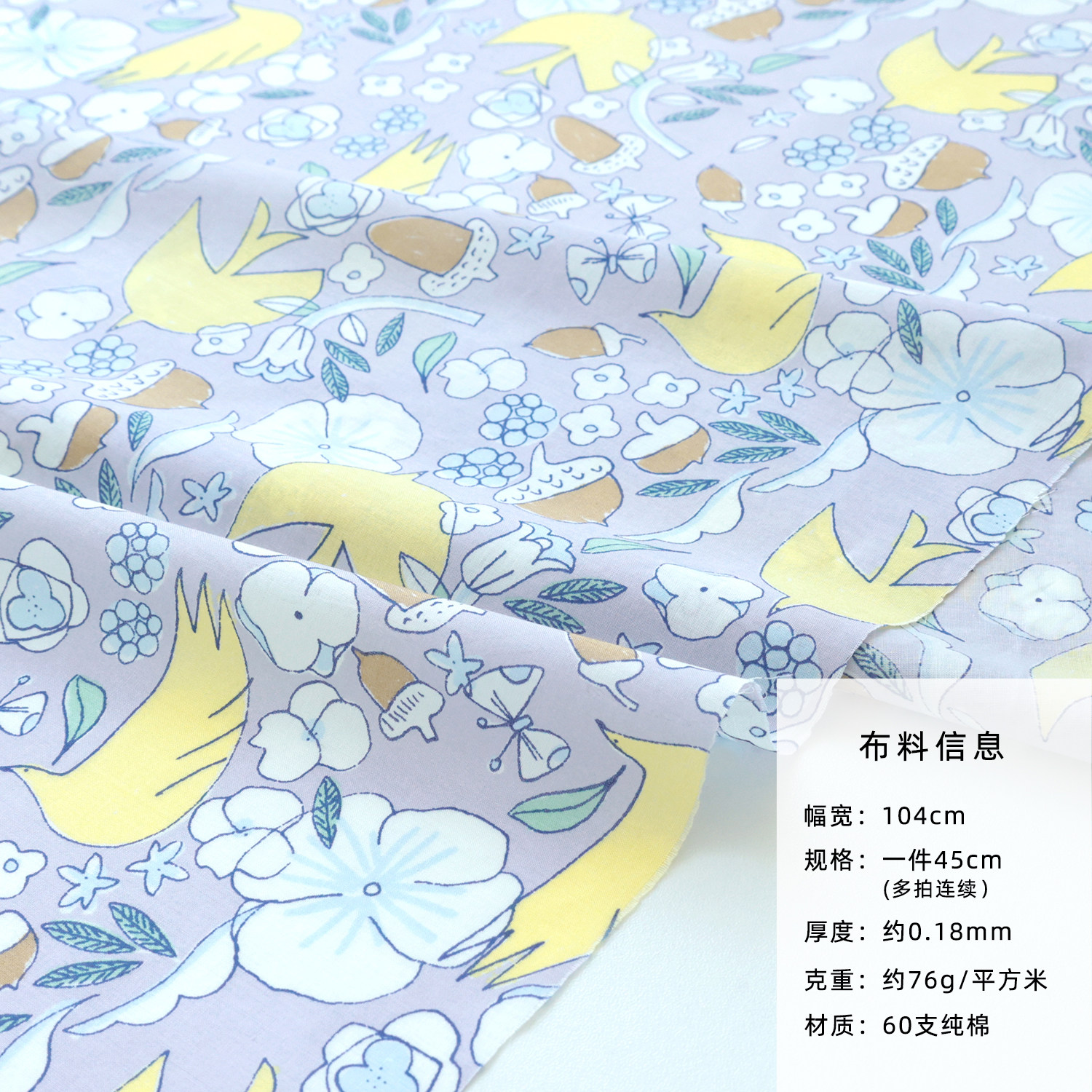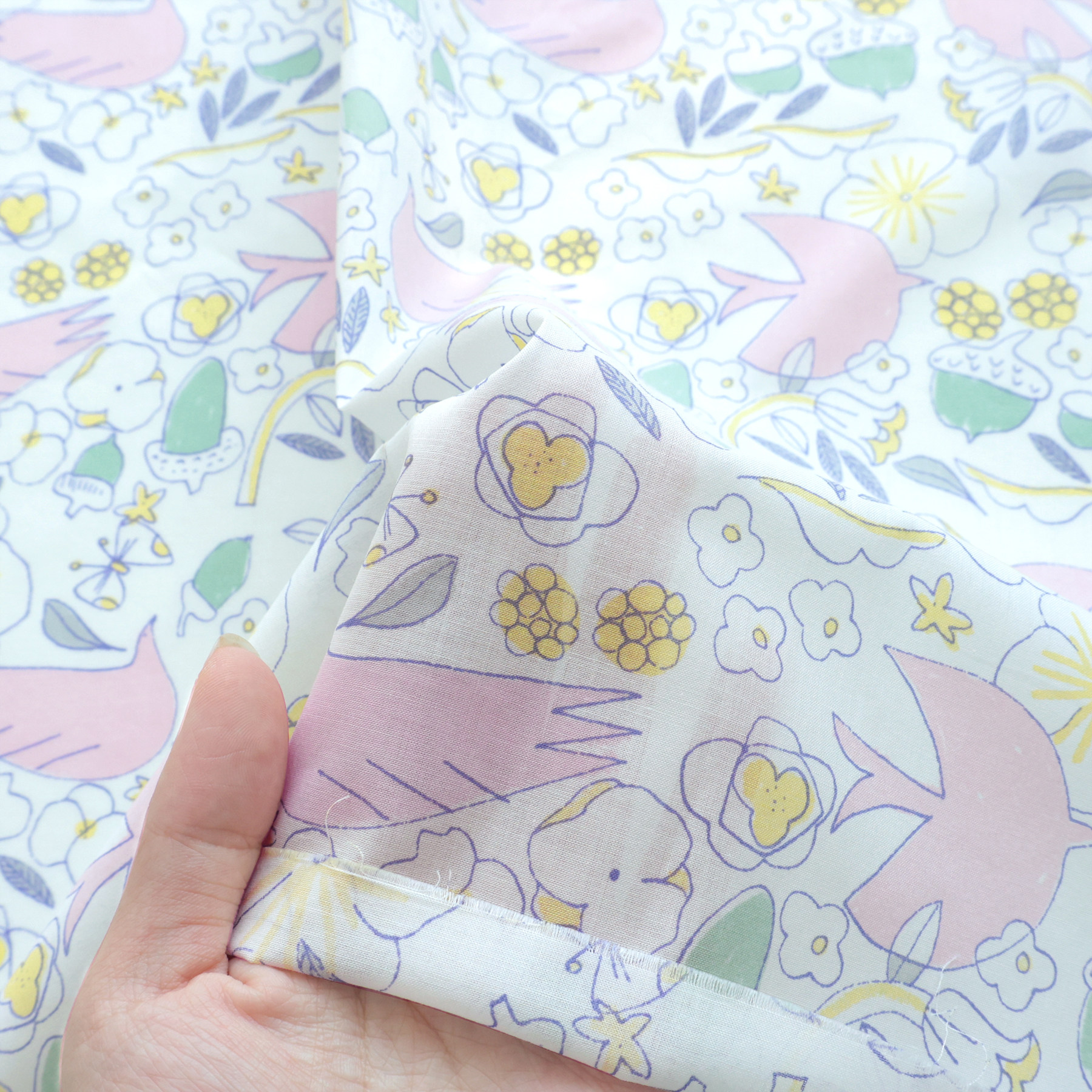 日本进口hokkoh60支纯棉面料印花手工轻薄透气衬衫服装布飞花鸽语