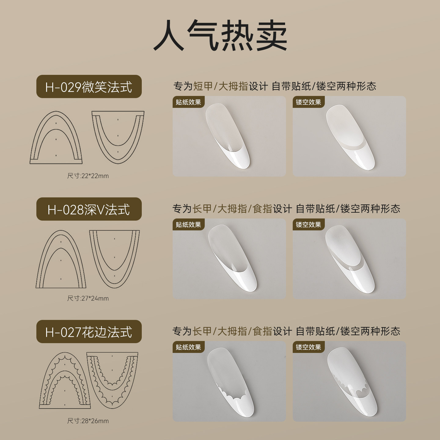 kaniu/卡妞新款法式镂空贴纸网红蝴蝶五角星喷绘拍拍胶美甲工具