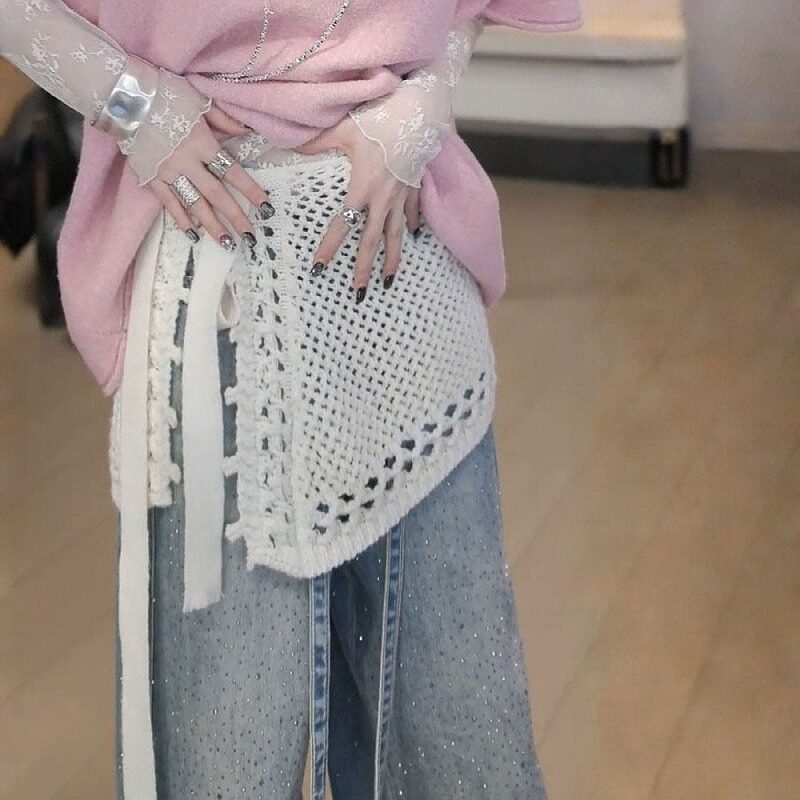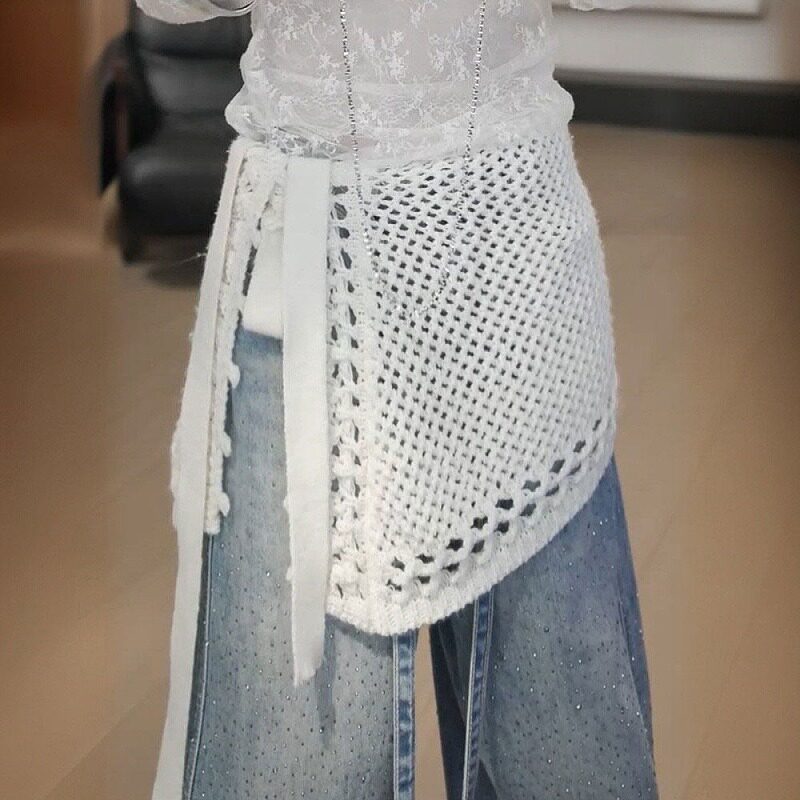 大码胖mm立体钩编针织绑带一片式遮屁帘披肩短裙女早春显瘦半身裙