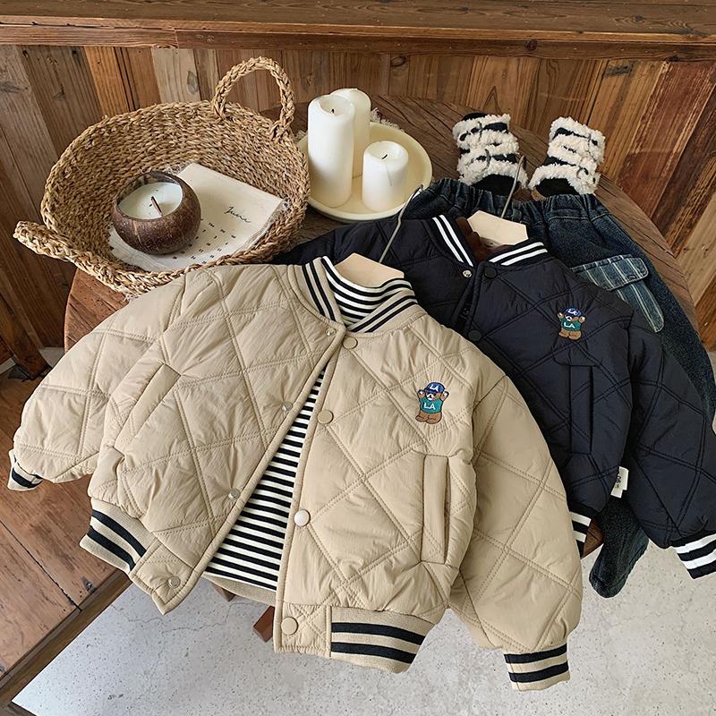 儿童冬装夹棉外套2025新款韩版男童刺绣小熊加厚棒球服宝宝棉衣潮