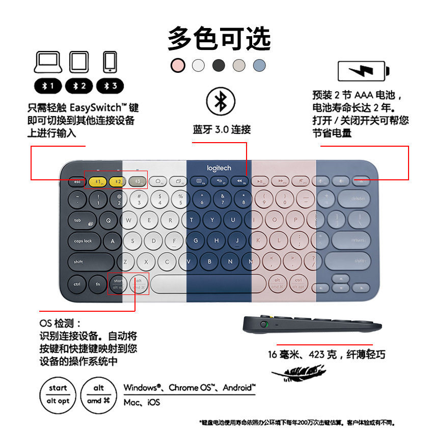 跨境款罗技k380蓝牙迷你无线静音键盘 电脑手机平板随身PEBBLE 2