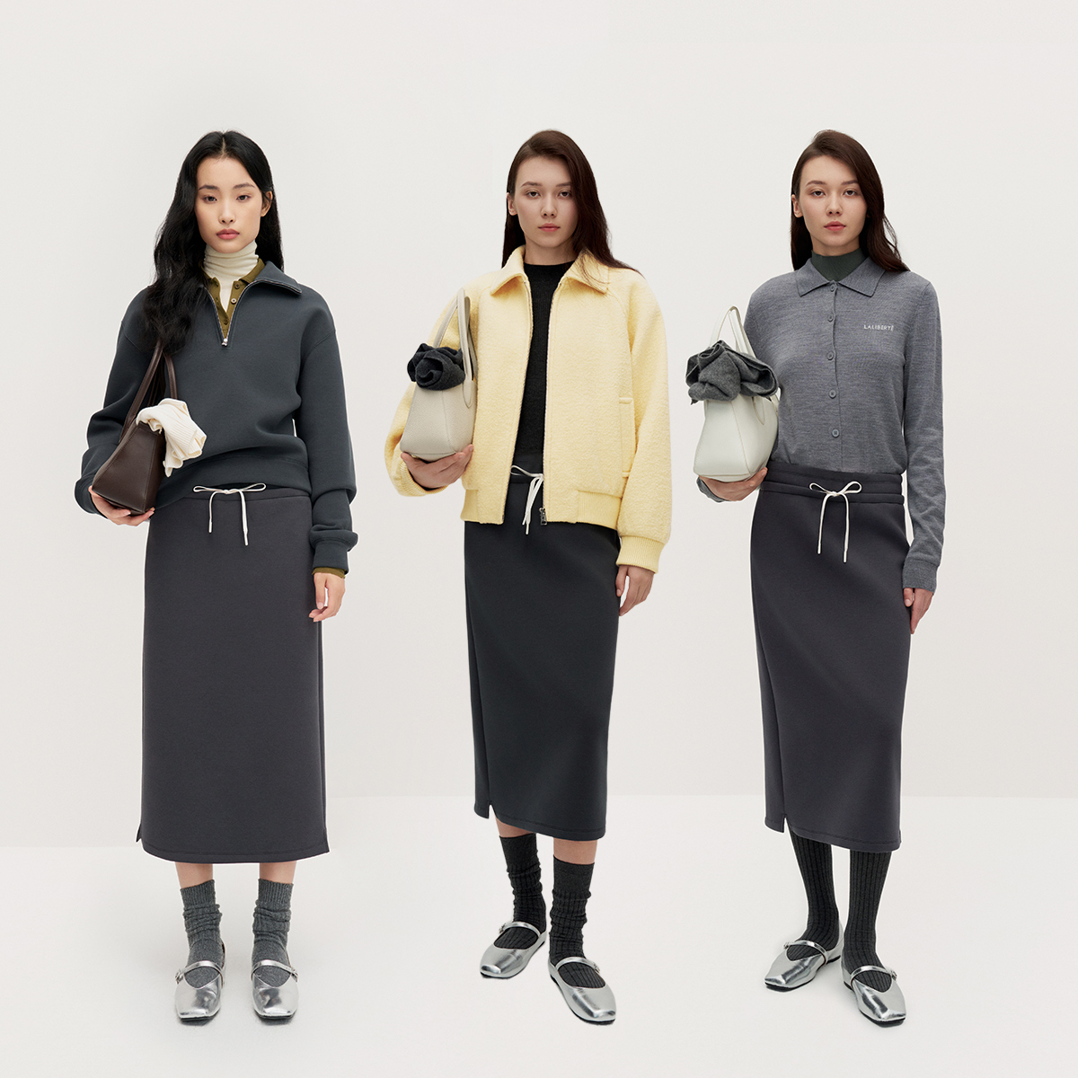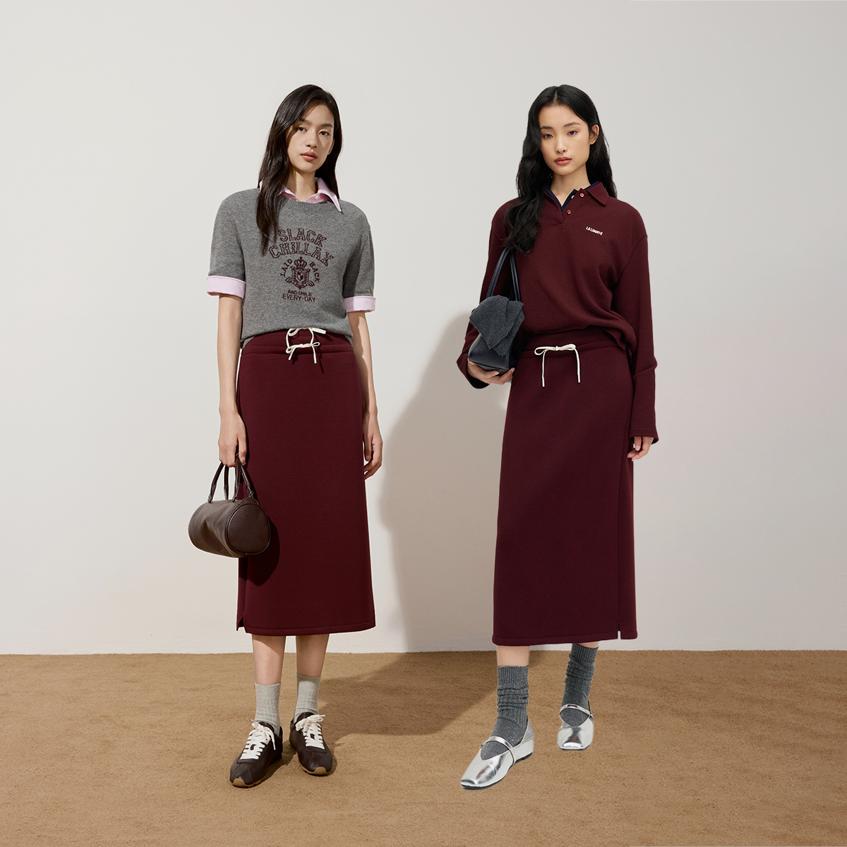 OCHIRLY欧时力 极简通勤质感显瘦垂阔直筒半身裙长裙秋冬新品