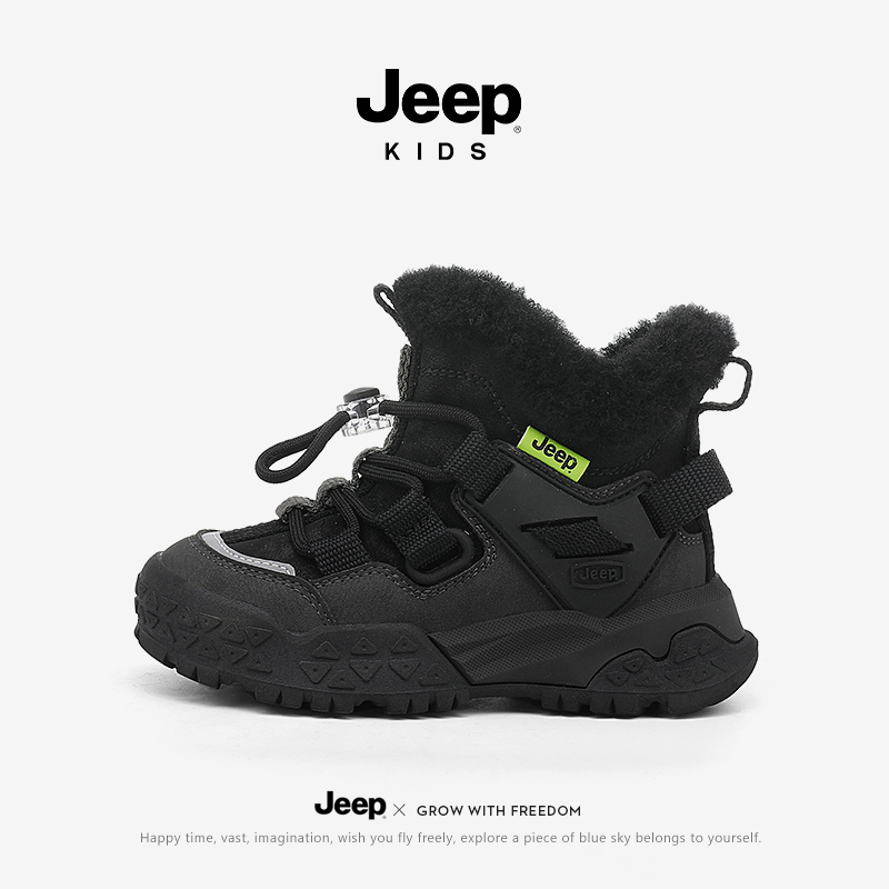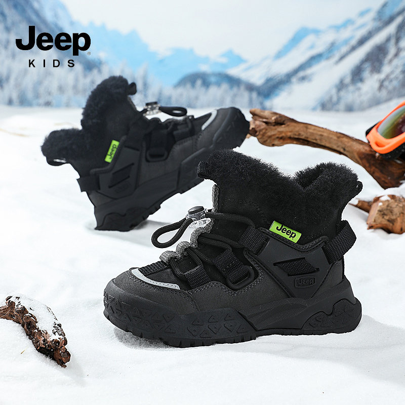 Jeep儿童雪地靴男童棉靴东北冬季加绒加厚防滑防水户外女童大棉鞋