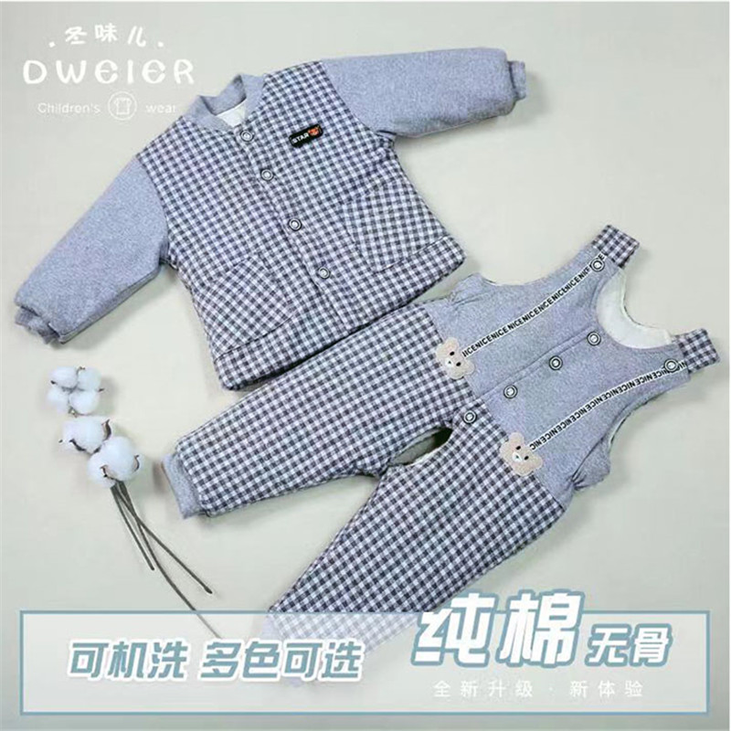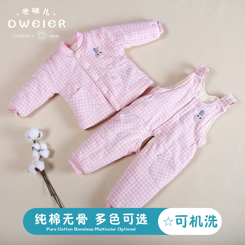婴儿手工棉衣宝宝冬装花加厚男女小孩棉袄儿童背带裤套装冬季