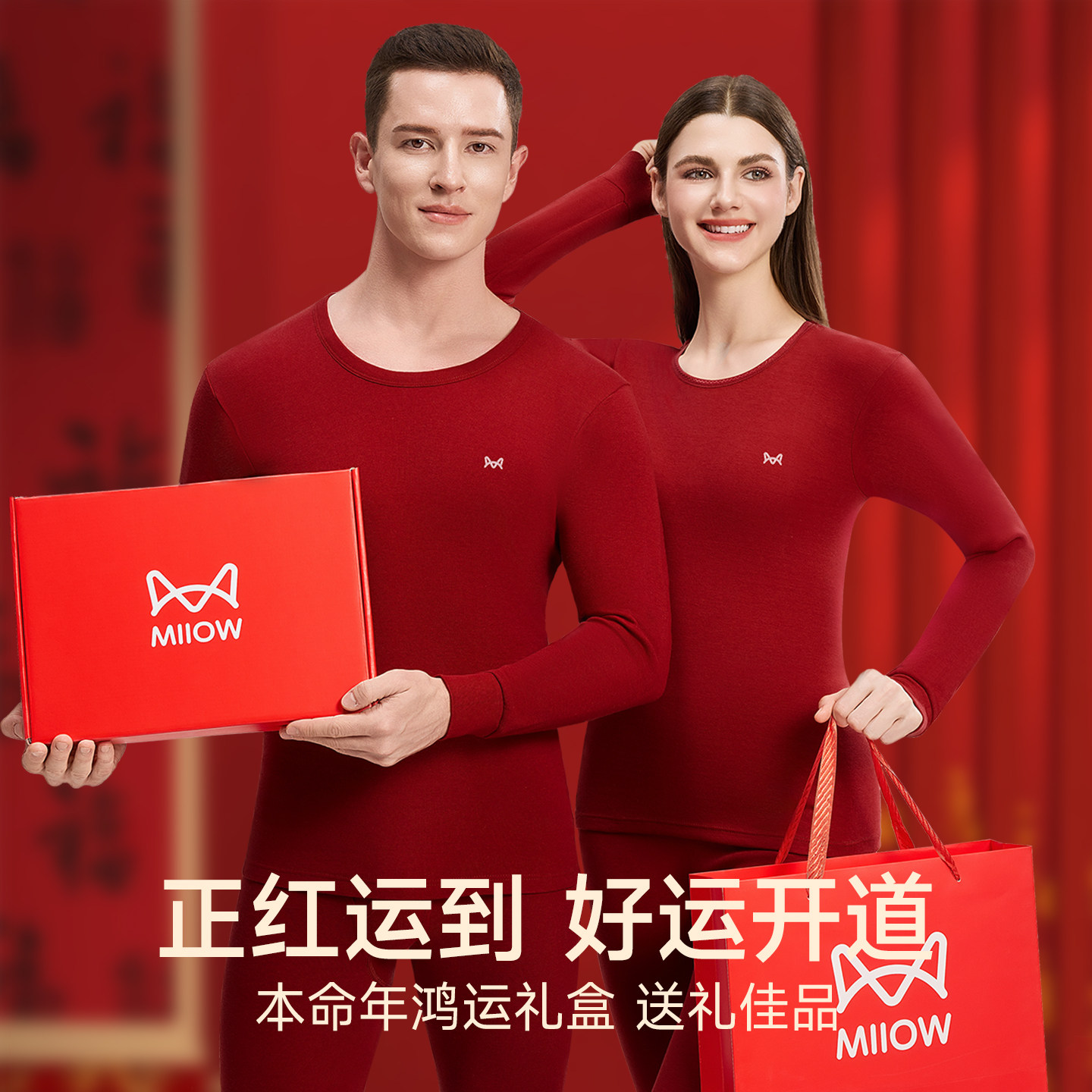 猫人本命年保暖内衣男士套装酒红色结婚2026马年衣服秋衣秋裤冬季