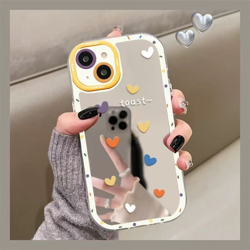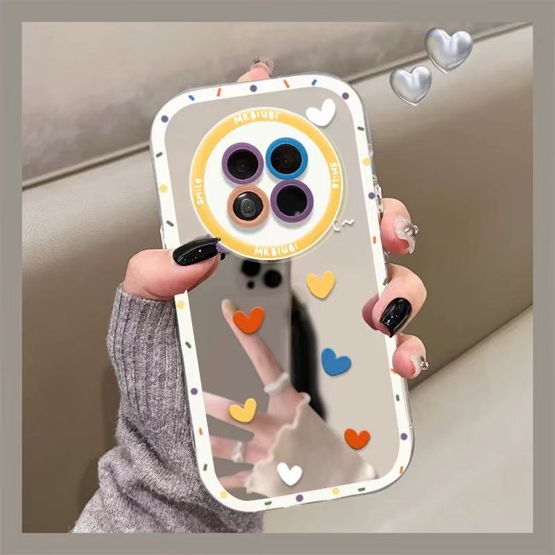 镜子彩色爱心适用于vivo Y300pro手机壳Y200GT/100i保护套Y78my50新款y77t+软76sY73s/y35m女53s防摔y33T狐尾