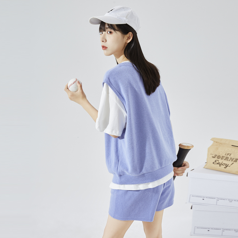 唐狮春夏运动休闲时尚套装女宽松减龄V领背心短裤俏皮活泼两件套