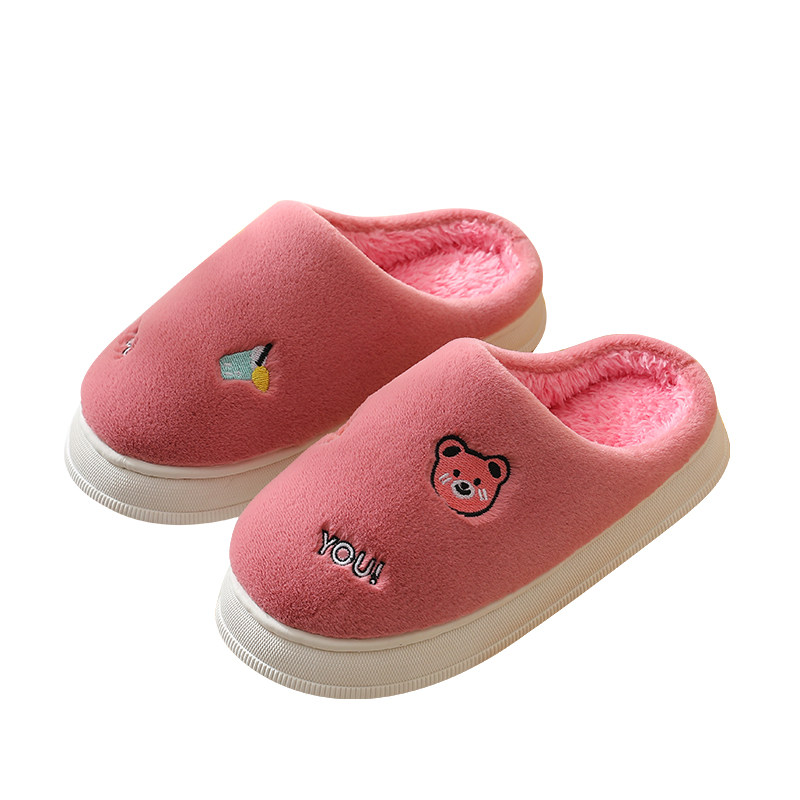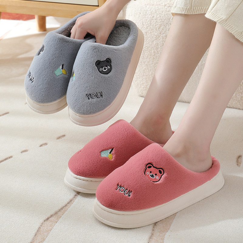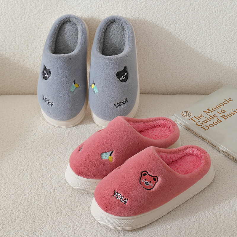 秋冬季保暖棉拖鞋女士居家外穿厚底软底毛毛绒包头情侣款绣花鞋男