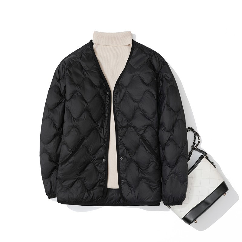 女式V领无领轻便羽绒服,中老年母亲超轻超薄内胆,大码短款内胆