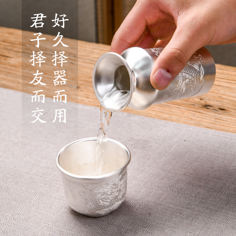 纯银酒杯家用纯银999白酒杯子酒具套装1两2两白酒杯手工酒壶酒盅
