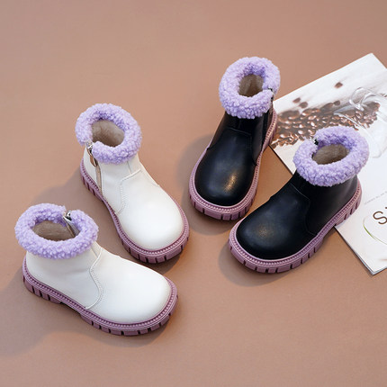 真皮女童靴子小女孩洋气公主靴儿童加绒小皮靴2025秋冬新款二棉靴