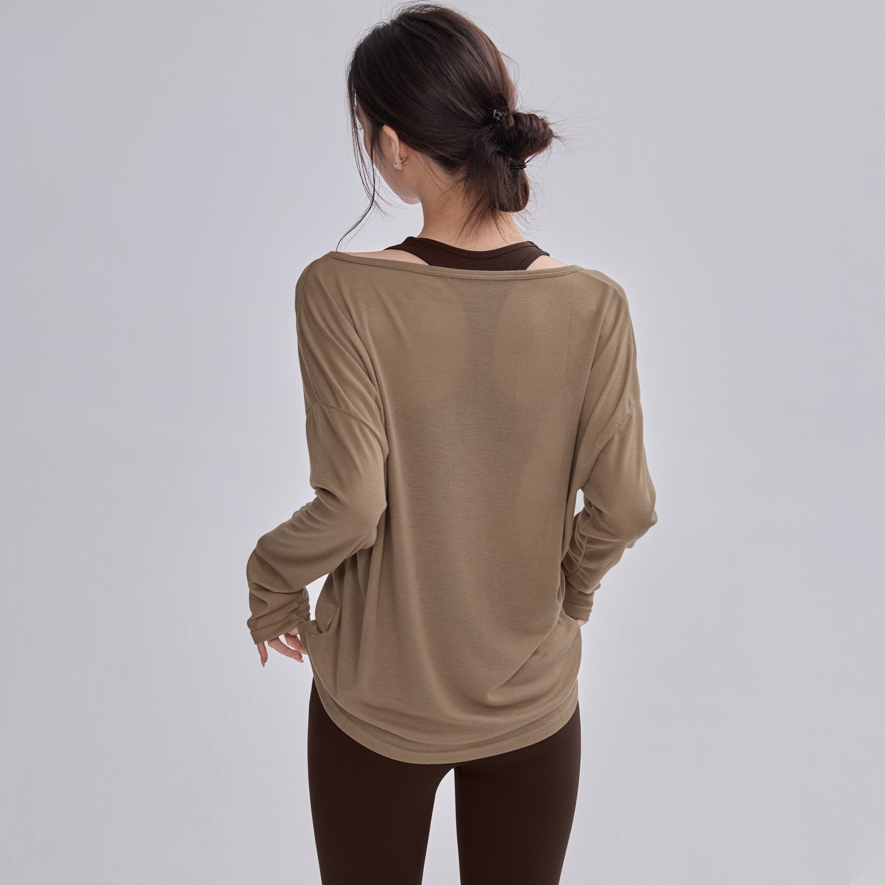 瑜伽服T恤女秋冬长袖罩衫美拉德运动上衣普拉提宽松健身衣套装新