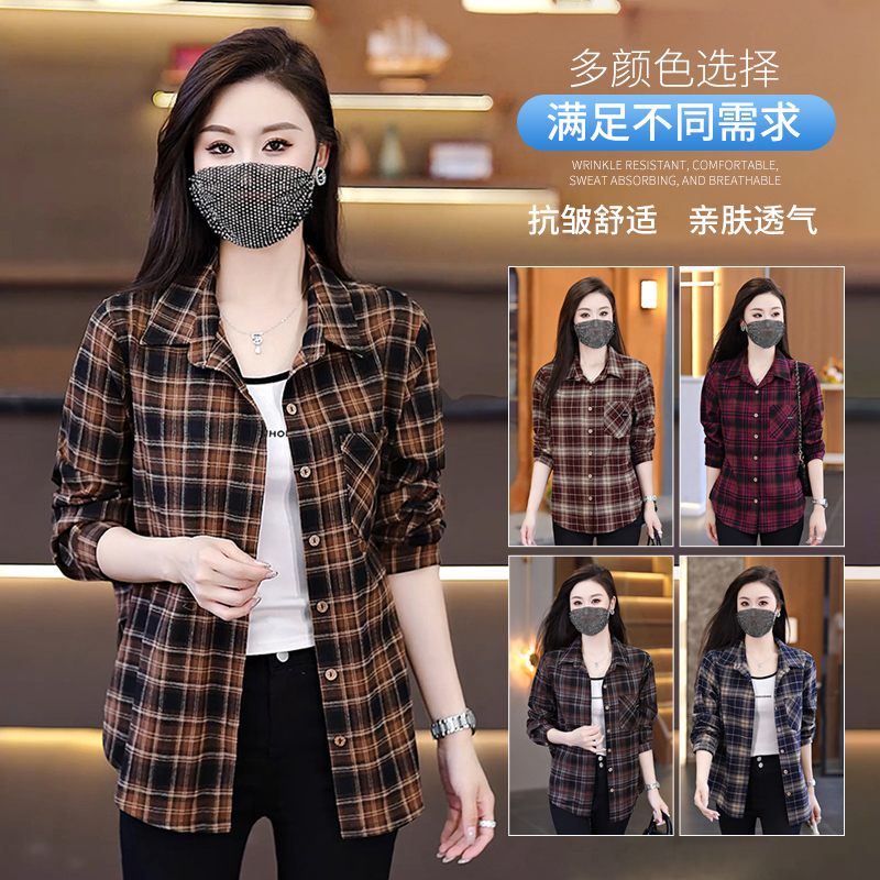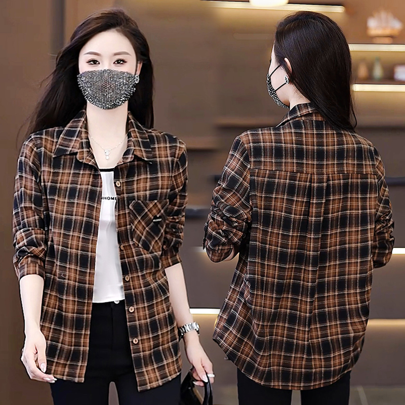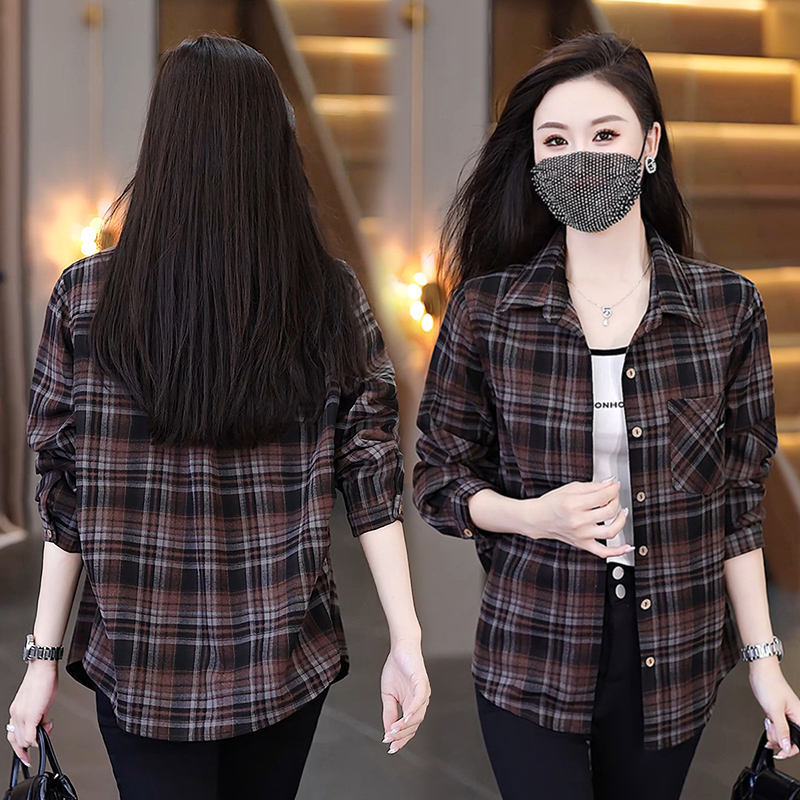 格子衬衫女长袖早秋女装2025新款休闲宽松中长款POLO衫衬衣外套潮