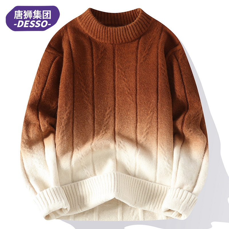 唐狮集团DESSO 2025渐变色毛衣男款冬季潮牌时尚针织衫男慵懒风