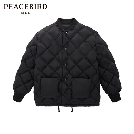 太平鸟男装 潮流日系棒球领棉服黑色棉衣男B1ABD4V11