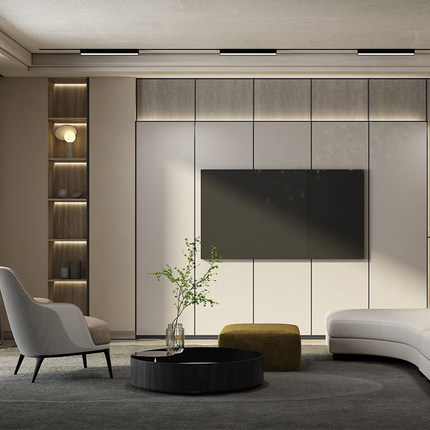 顾家家居定制背景墙电视柜一体客厅满墙电视柜储物柜卡塔尼亚