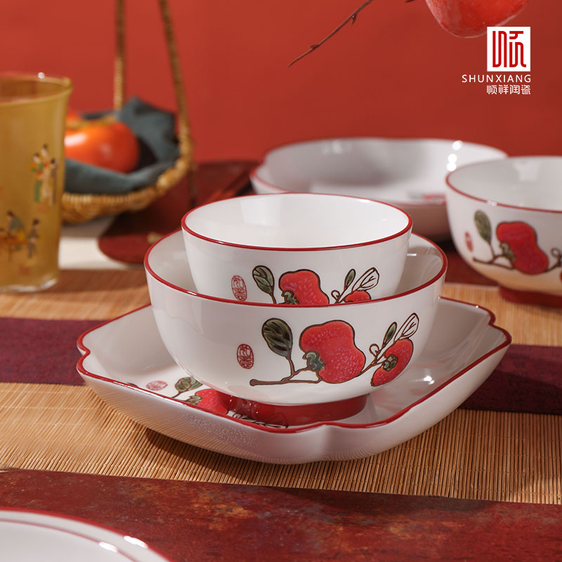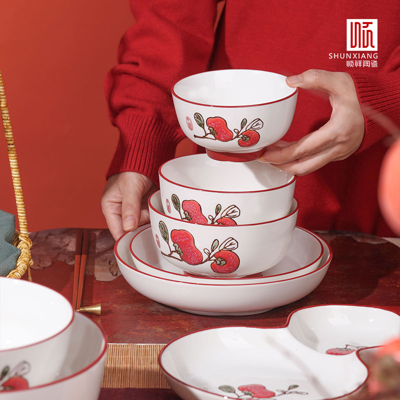 顺祥陶瓷中式碗碟套装家用釉下彩