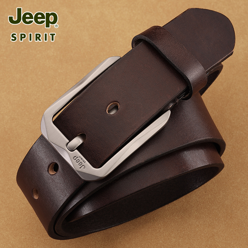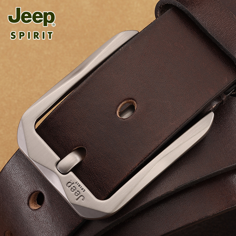 JEEP SPIRIT皮带男士百搭复古针扣腰带头层牛皮休闲青年裤带男款