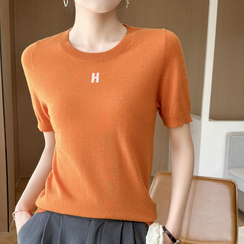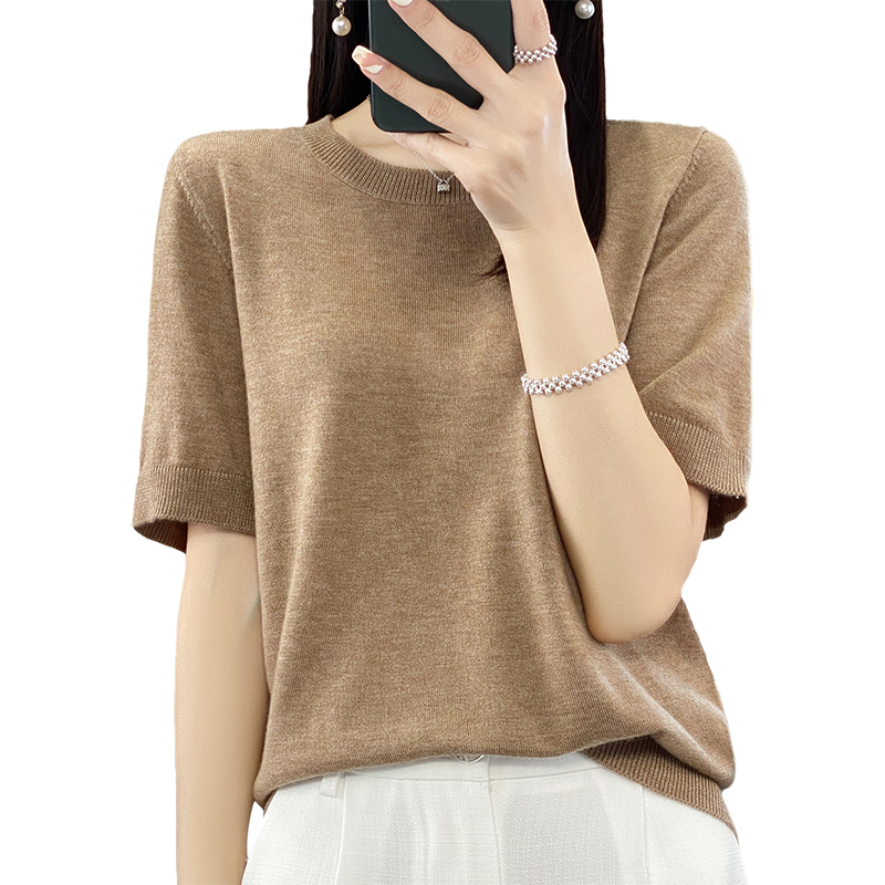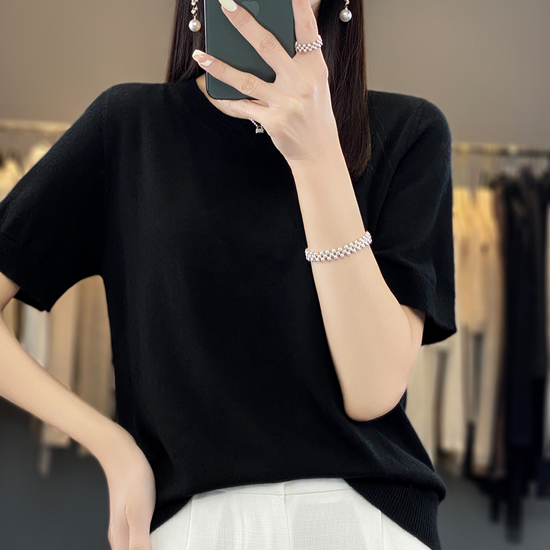 【微瑕疵】精纺细羊毛短袖T恤女薄款针织打底衫2025新款圆领上衣